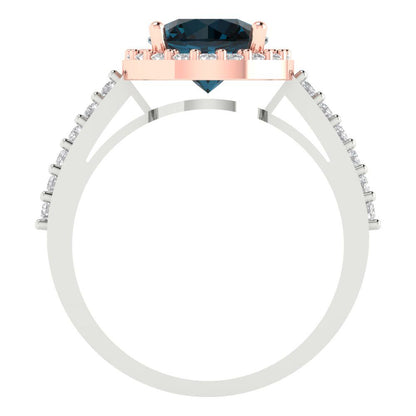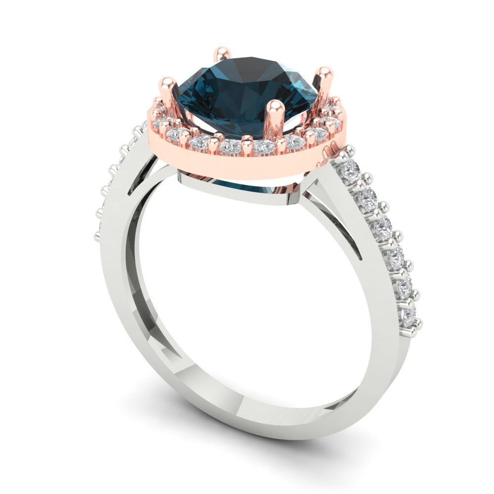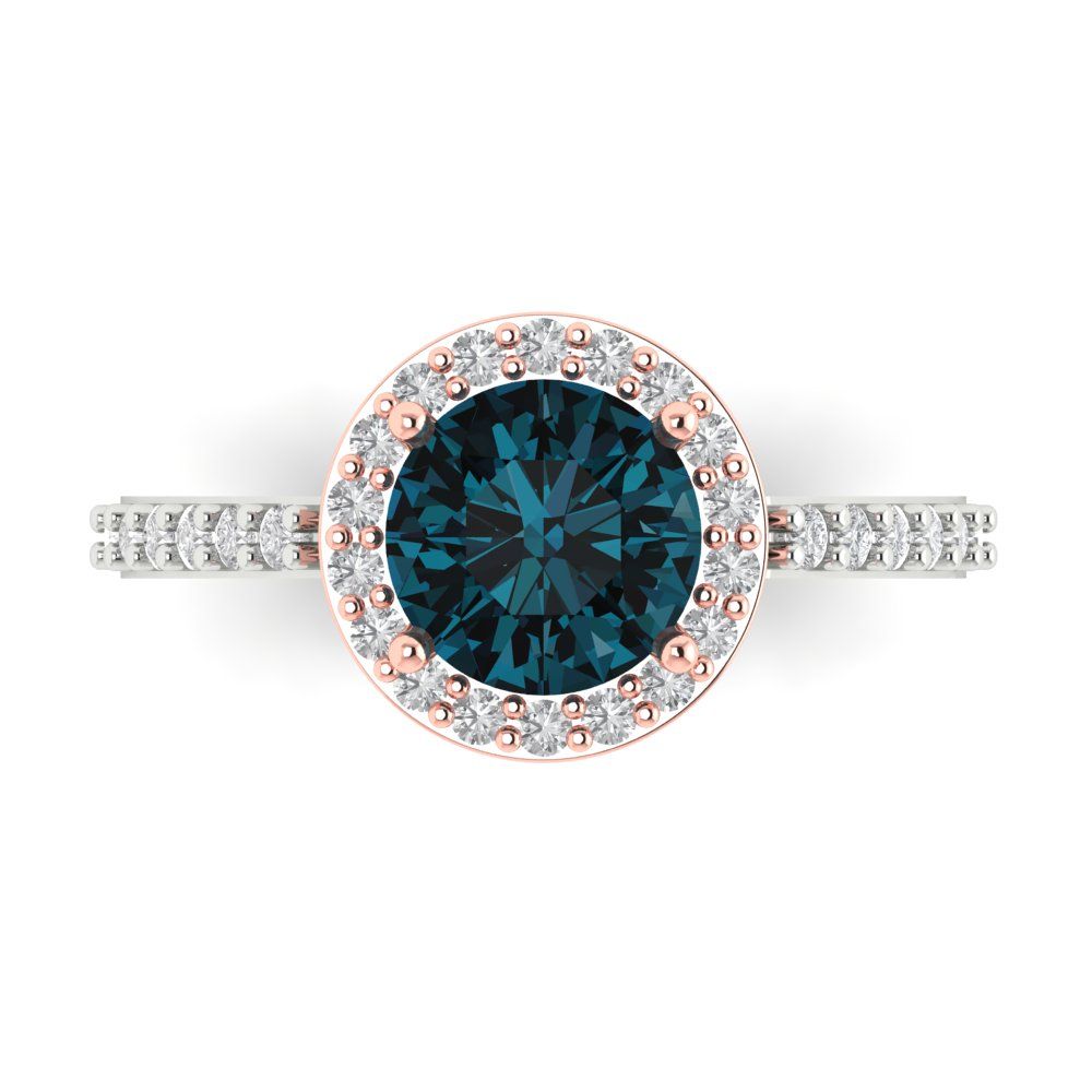 1.86 cttw Natural London Blue Topaz Solitaire with Zirconia Simulated Diamond Accents Engagement Ring - Solid Gold (Round Cut,7.5mm)