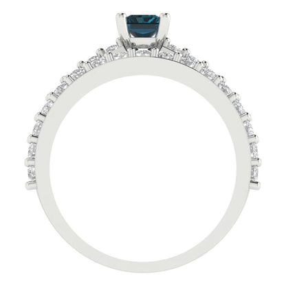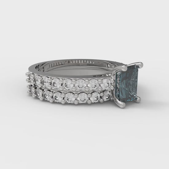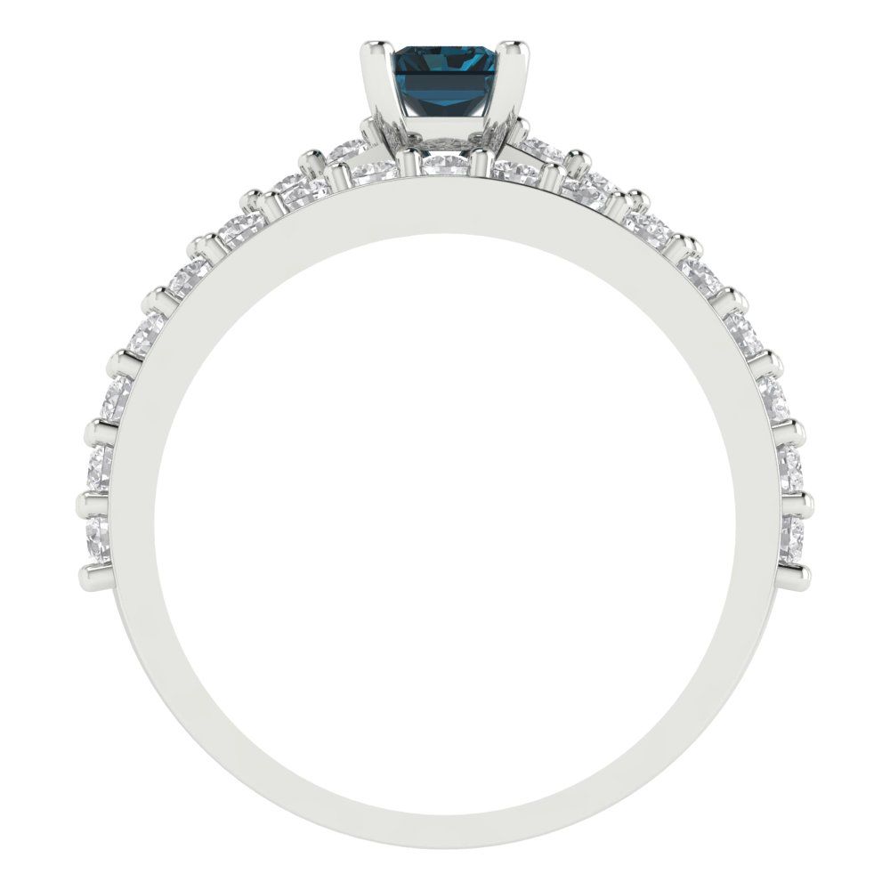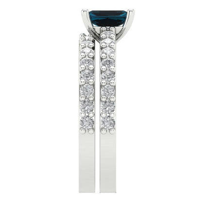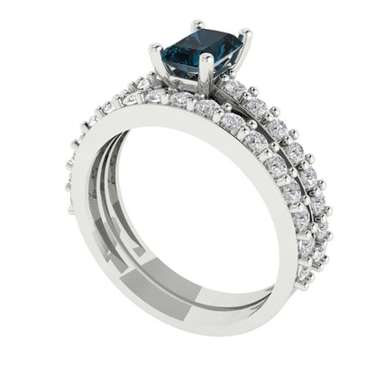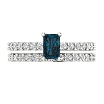 1.325 cttw Emerald Cut Natural London Blue Topaz Bridal Set - Solid White Gold Engagement Ring & Wedding Band