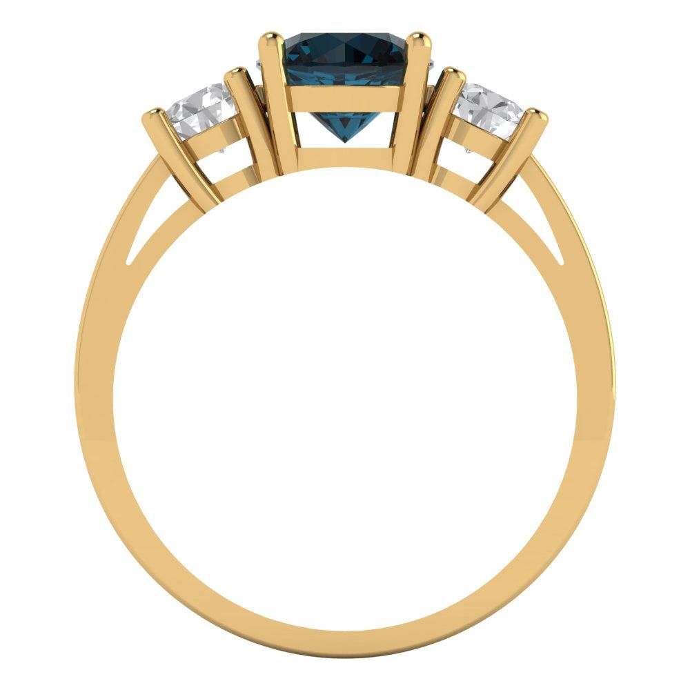 1.5 cttw Natural London Blue Topaz Three-Stone Engagement Ring - Solid Gold (Round Cut,6.5mm)