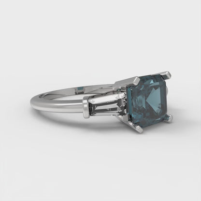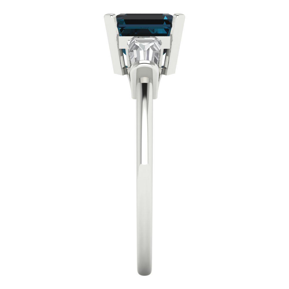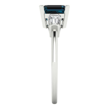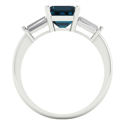 1.62 cttw Natural London Blue Topaz Three-Stone Engagement Ring - Solid Gold (Square Emerald Cut,6.5X6.5mm)