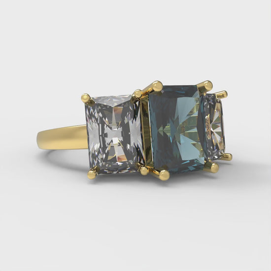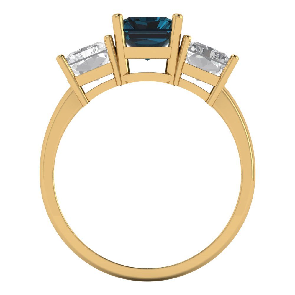 4 cttw Natural London Blue Topaz Three-Stone Engagement Ring - Solid Gold (Emerald Cut,8x6mm)