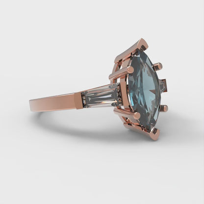 2 cttw Natural London Blue Topaz Three-Stone Engagement Ring - Solid Gold (Marquise Cut,11x5.5mm)