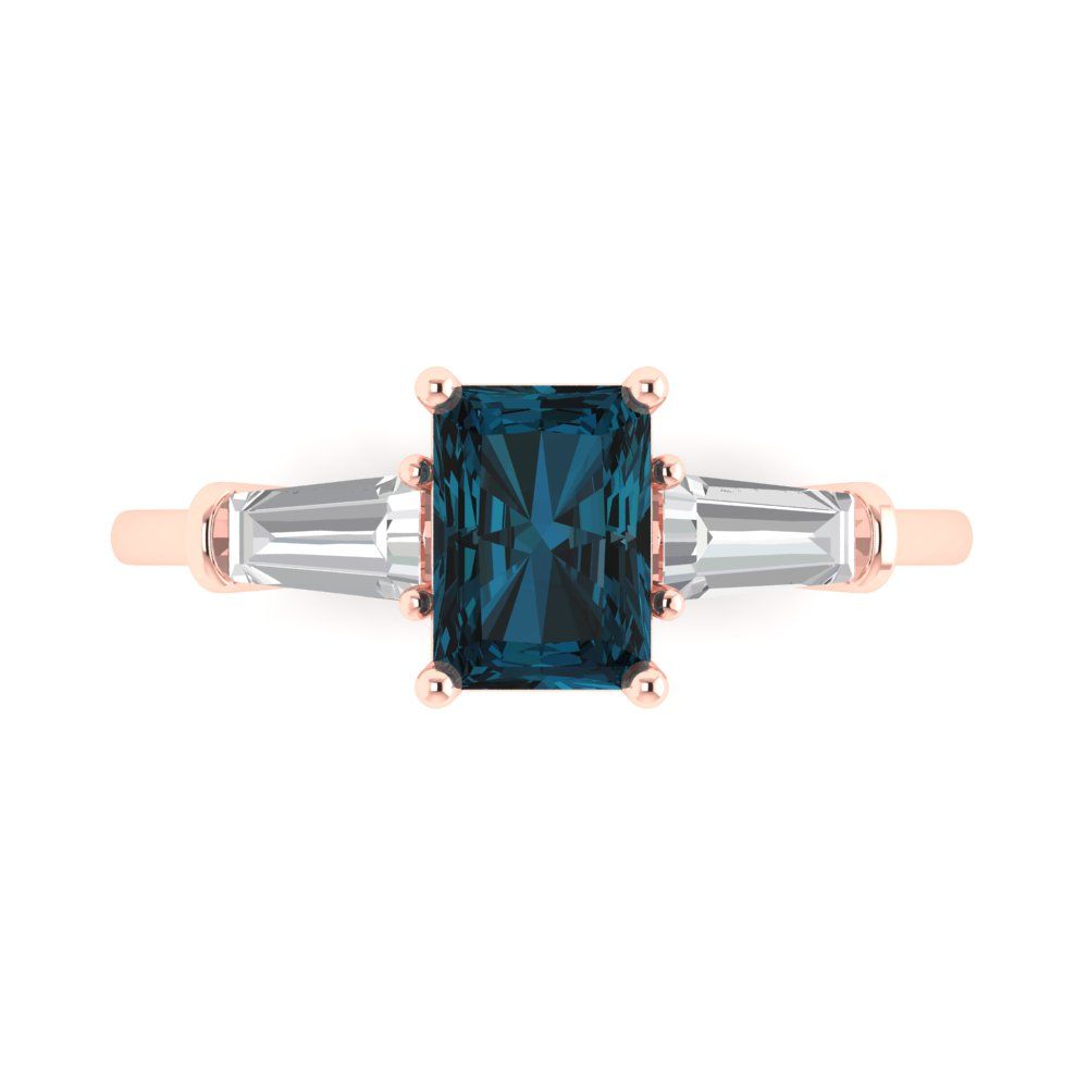 1.5 cttw Natural London Blue Topaz Three-Stone Engagement Ring - Solid Gold (Emerald Cut,7.0x5.0mm)