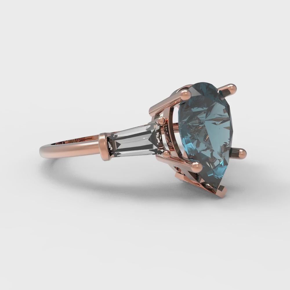 2.5 cttw Natural London Blue Topaz Three-Stone Engagement Ring - Solid Gold (Pear Cut,10x7mm)