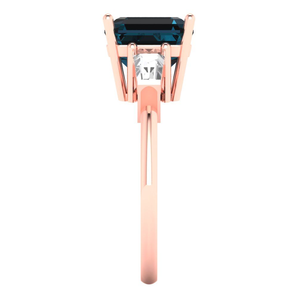 3 cttw Natural London Blue Topaz Three-Stone Engagement Ring - Solid Gold (Asscher Cut,8.0mm)