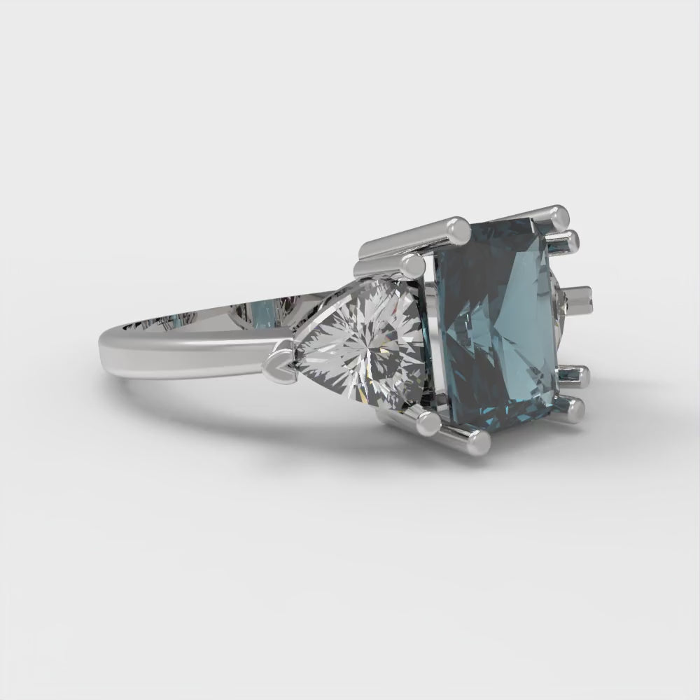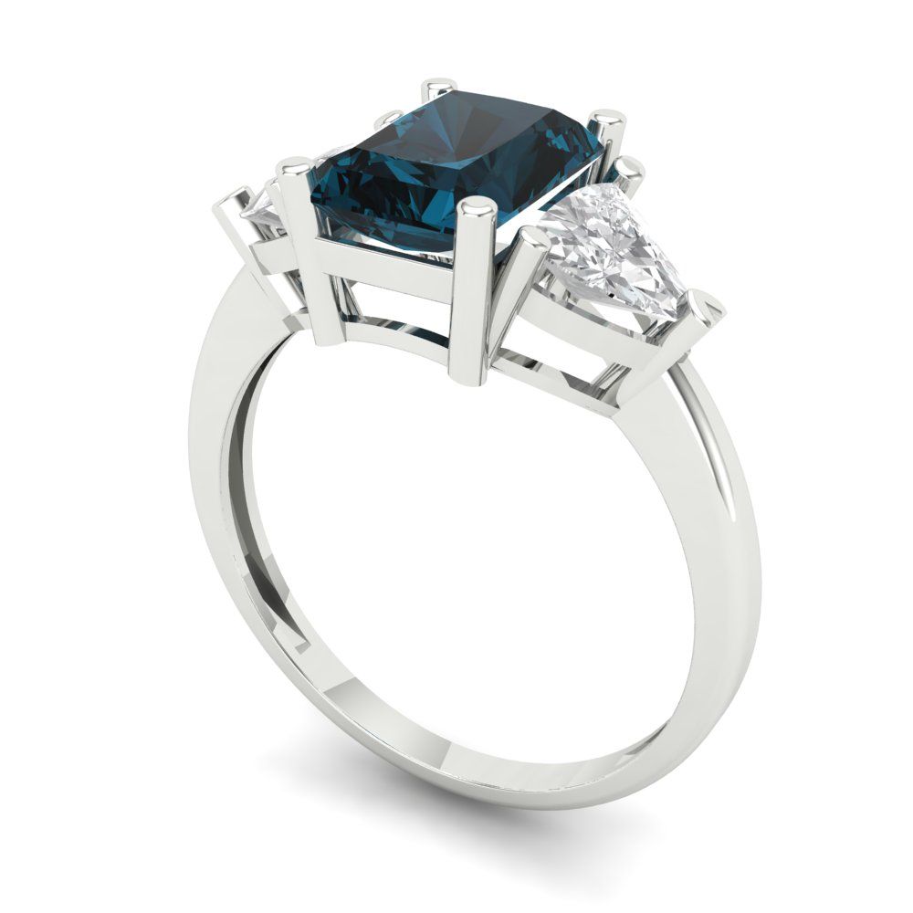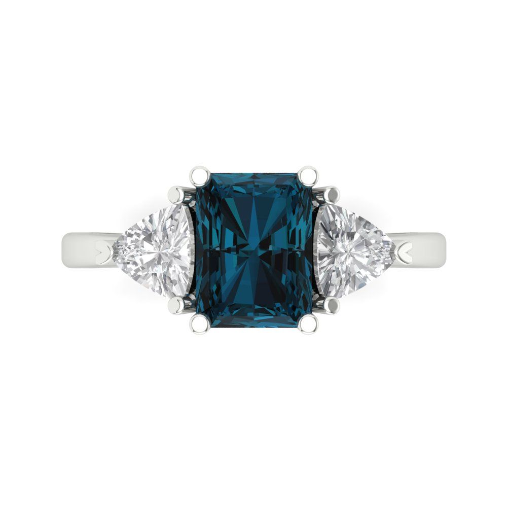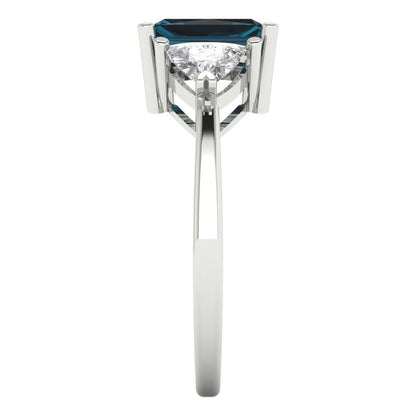 2.82 cttw Natural London Blue Topaz Three-Stone Engagement Ring - Solid Gold (Emerald Cut,8x6mm)