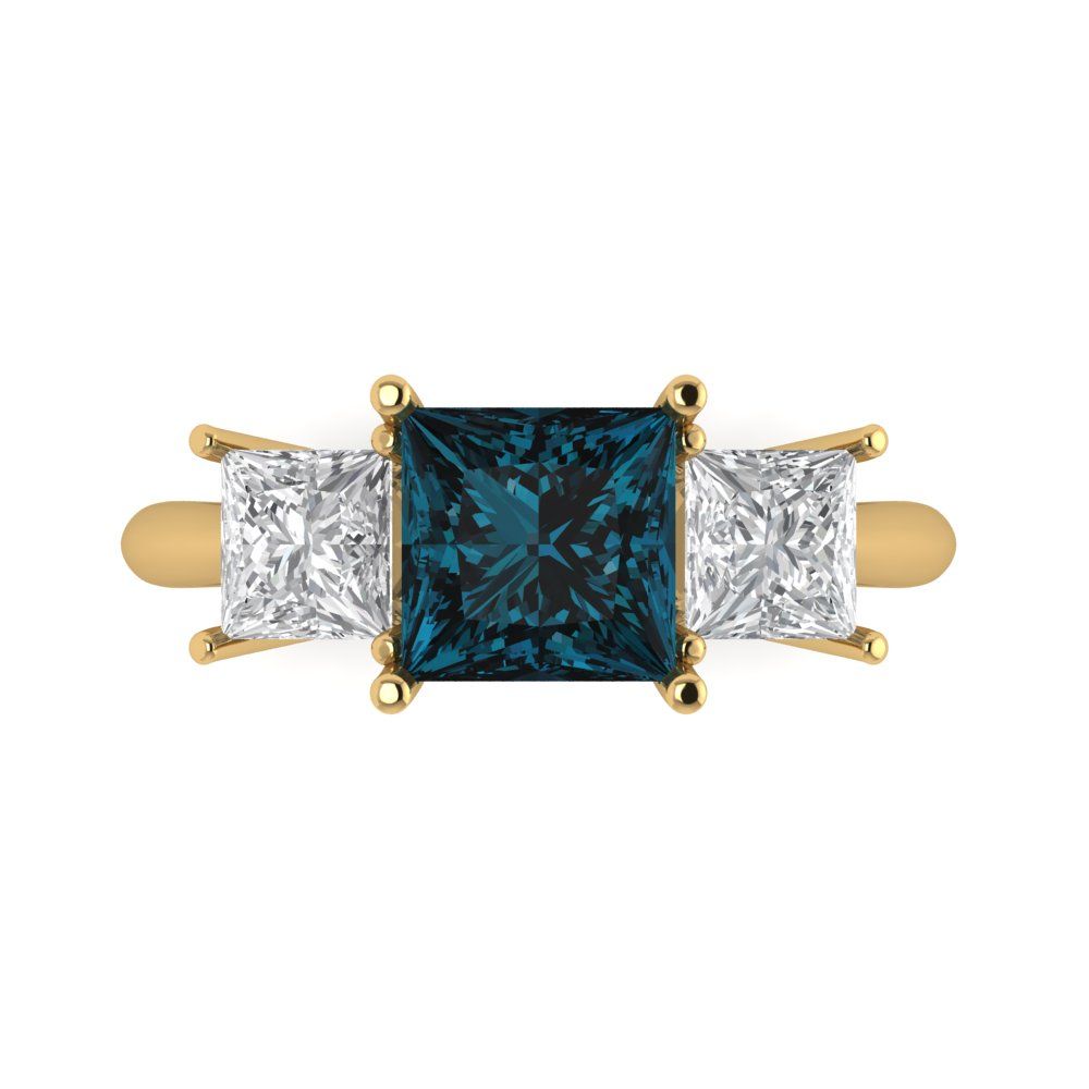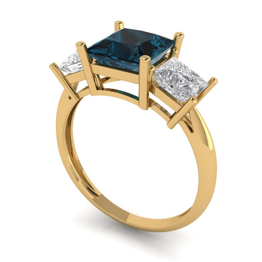 2.5 cttw Natural London Blue Topaz Three-Stone Engagement Ring - Solid Gold (Princess Cut,6.5 mm)
