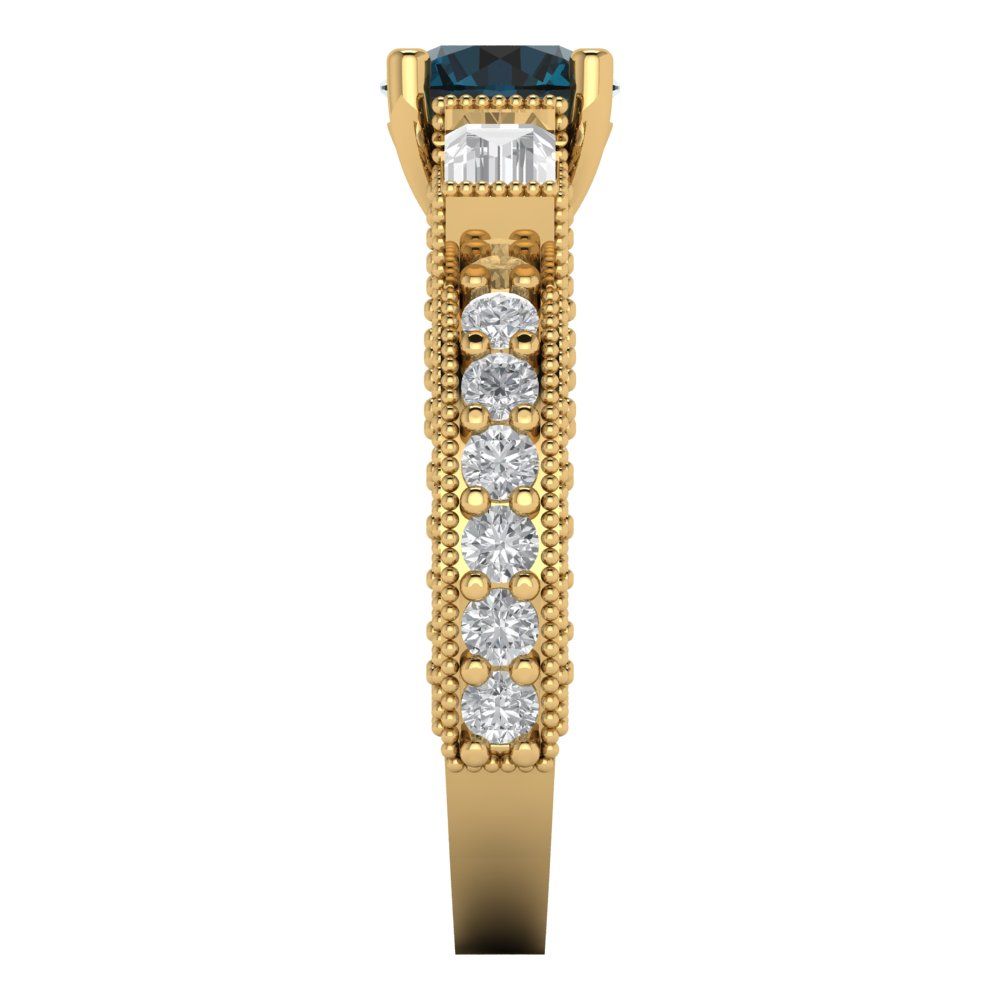 2.33 cttw Natural London Blue Topaz Three-Stone Engagement Ring - Solid Gold (Round Cut,6.5mm)