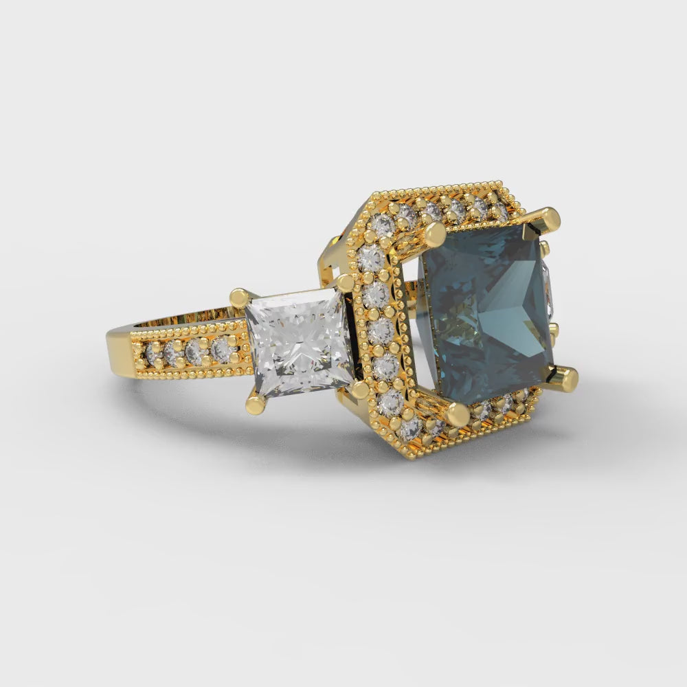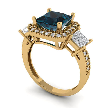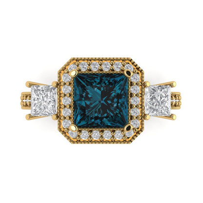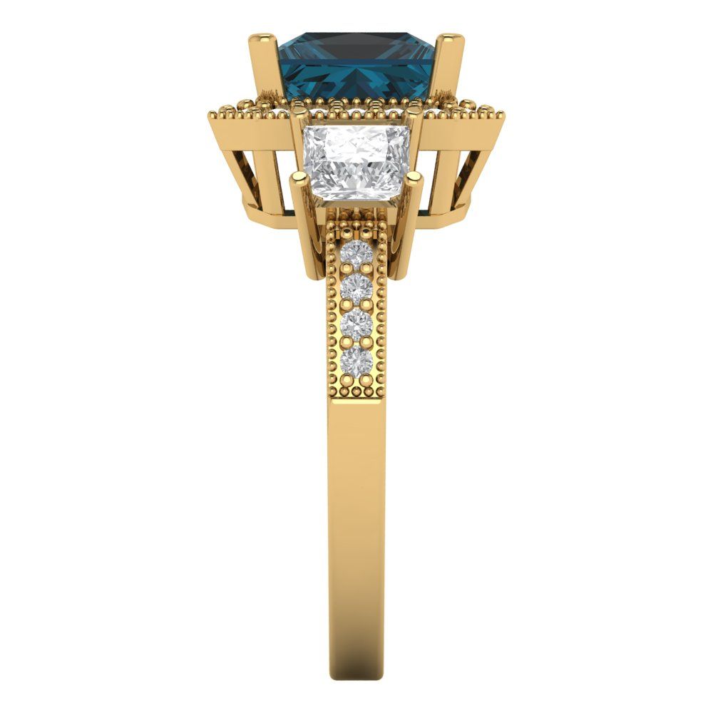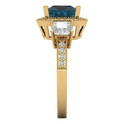 3.005 cttw Natural London Blue Topaz Three-Stone Engagement Ring - Solid Gold (Princess Cut,7.0mm)