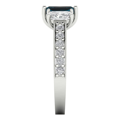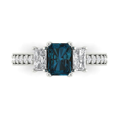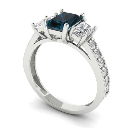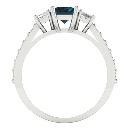 1.88 cttw Natural London Blue Topaz Three-Stone Engagement Ring - Solid Gold (Emerald Cut,7x5mm)