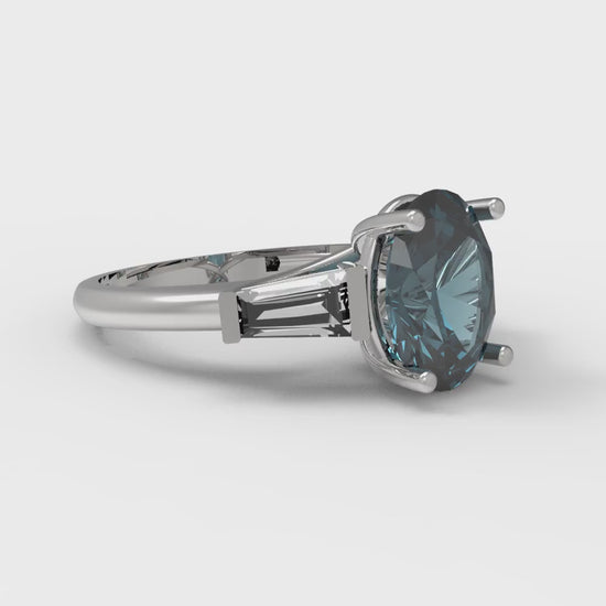 2.5 cttw Natural London Blue Topaz Three-Stone Engagement Ring - Solid Gold (Oval Cut,9x7mm)