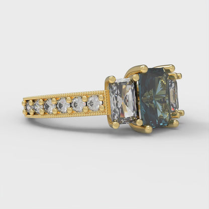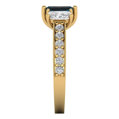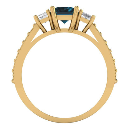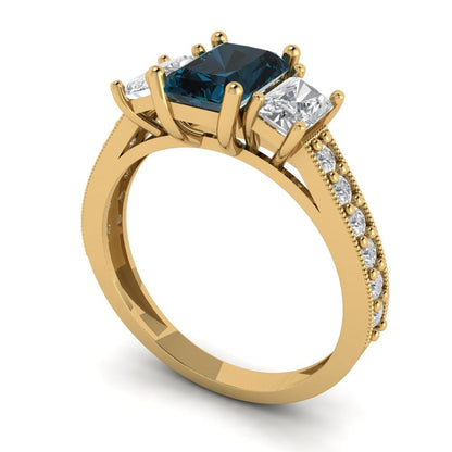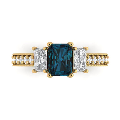 1.88 cttw Natural London Blue Topaz Three-Stone Engagement Ring - Solid Gold (Emerald Cut,7x5mm)