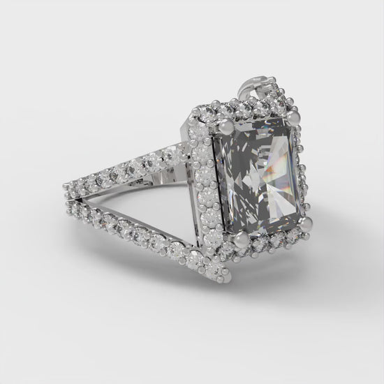 1.935 cttw Certified Moissanite Hidden Halo Engagement Ring - Solid Gold (VVS1, D-F,Emerald Cut,7.5x5.5mm)