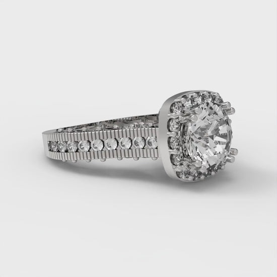 2.37 cttw Certified Moissanite Hidden Halo Engagement Ring - Solid Gold (VVS1, D-F,Round Cut,7.5mm)