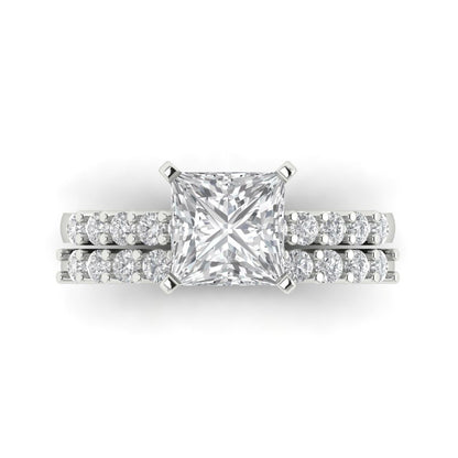 2.63 cttw Princess Cut Moissanite Bridal Set - Solid White Gold Engagement Ring & Wedding Band