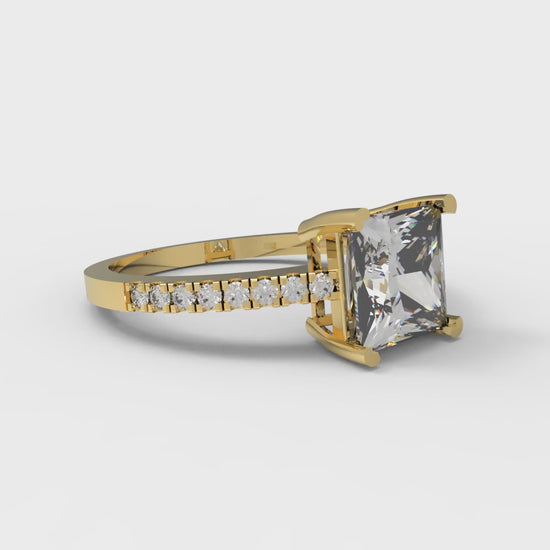 Radiate sophistication with our Solitaire with Accents Ring, expertly crafted in 14K or 18K solid gold.This design enhances the classic solitaire with shimmering accent stones, adding depth and brilliance to the centerpiece.