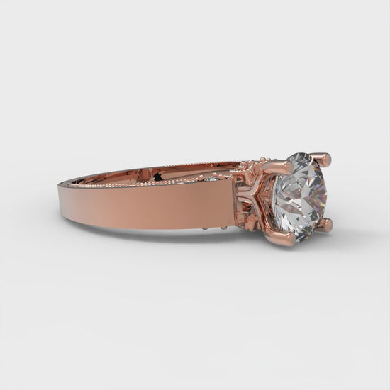 1.06 cttw Certified Moissanite Solitaire with Zirconia Simulated Diamond Accents Engagement Ring - Solid Gold (VVS1, D-F,Round Cut,6.5mm)