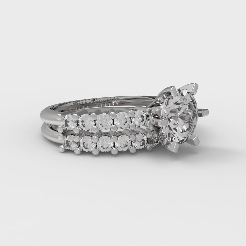 1.66 cttw Round Cut Moissanite Bridal Set - Solid White Gold Engagement Ring & Wedding Band