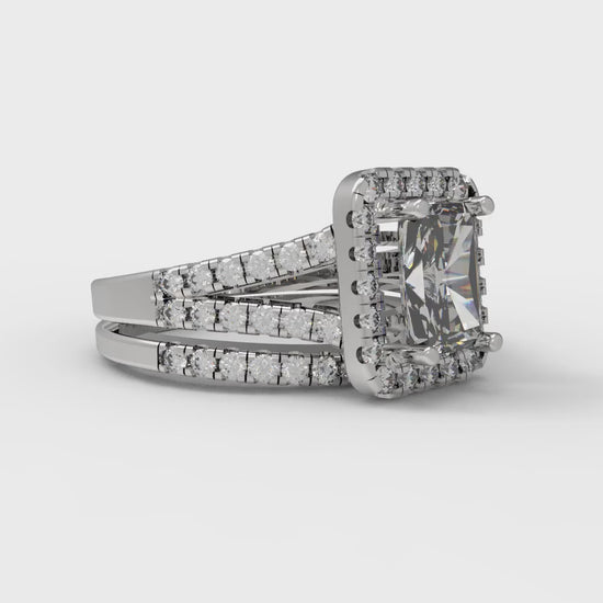 1.72 cttw Emerald Cut Moissanite Bridal Set - Solid White Gold Engagement Ring & Wedding Band