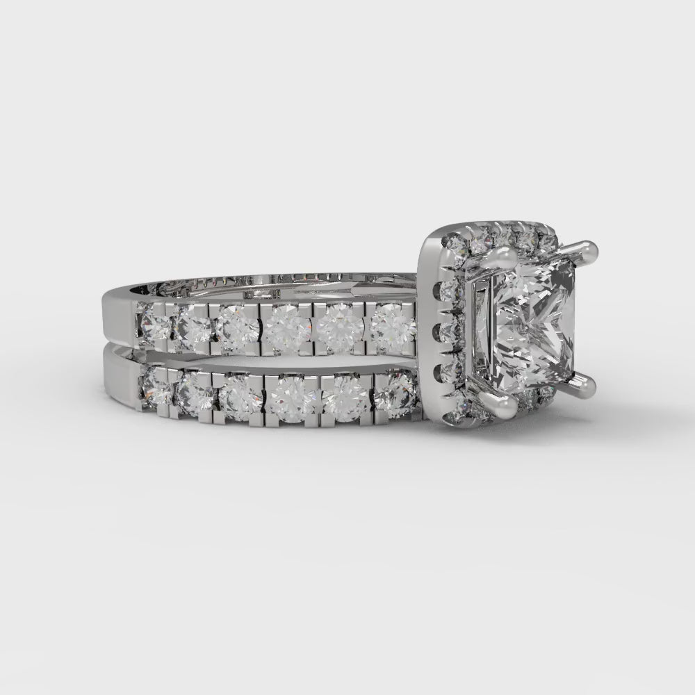 1.56 cttw Princess Cut Moissanite Bridal Set - Solid White Gold Engagement Ring & Wedding Band