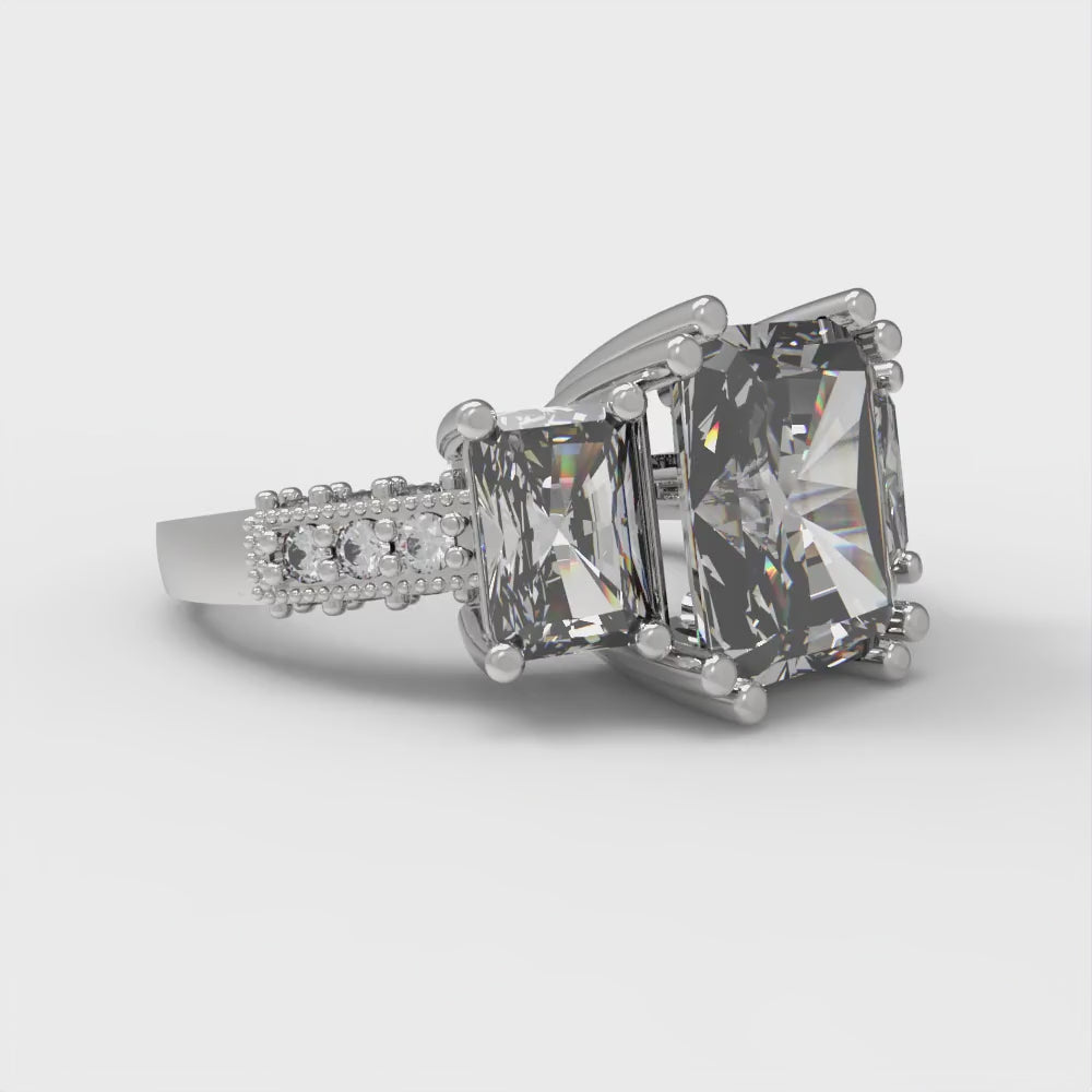 4.27 cttw Certified Moissanite Three-Stone Engagement Ring - Solid Gold (VVS1, D-F,Emerald Cut,9x7mm)