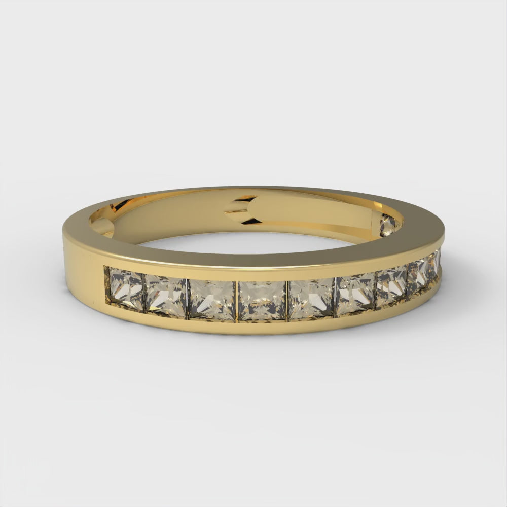 0.78 cttw Natural Morganite Princess Cut Yellow Gold Eternity Wedding Band