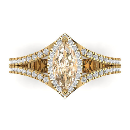 1.2 cttw Natural Morganite Hidden Halo Engagement Ring - Solid Gold (Marquise Cut,9x4.5mm)