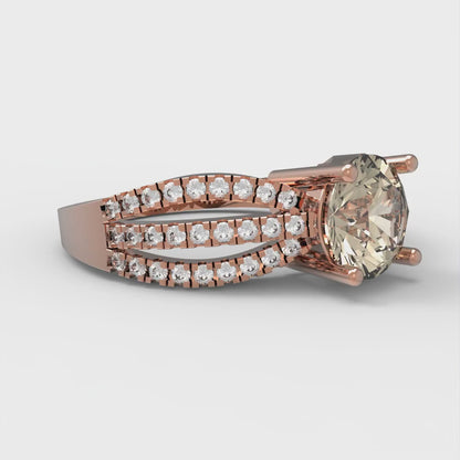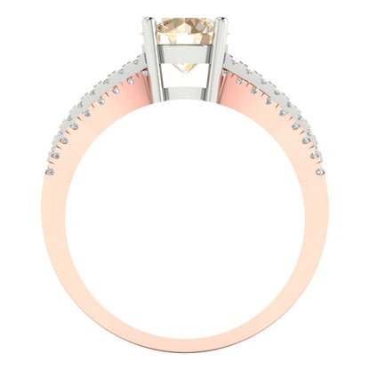 1.27 cttw Natural Morganite Solitaire with Zirconia Simulated Diamond Accents Engagement Ring - Solid Gold (Round Cut,6.5mm)