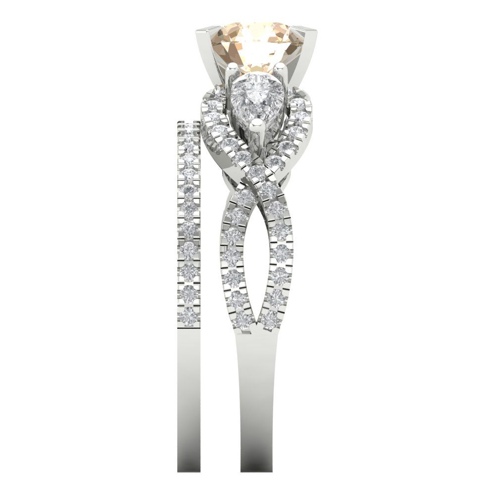 1.925 cttw Round Cut Natural Morganite Bridal Set - Solid White Gold Engagement Ring & Wedding Band
