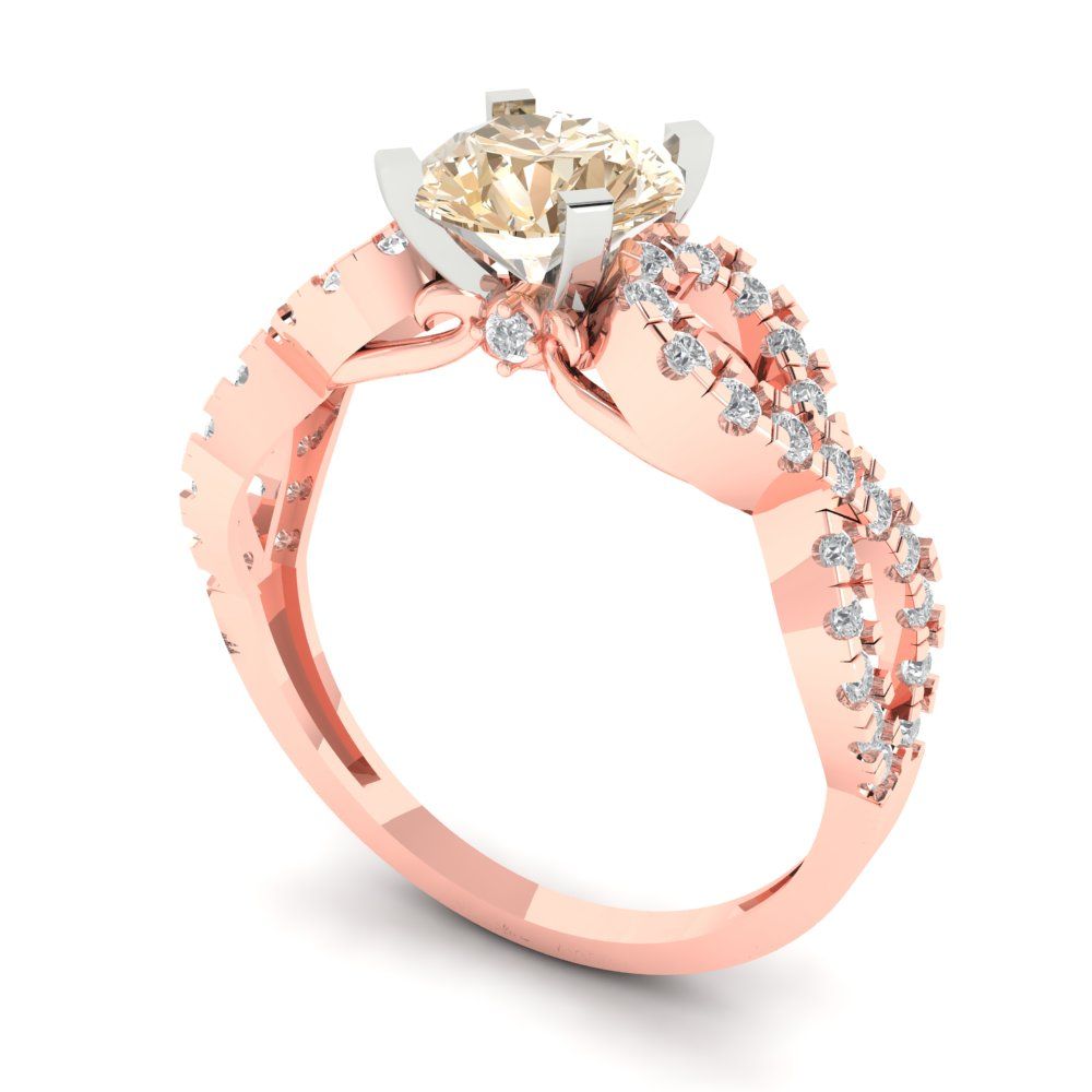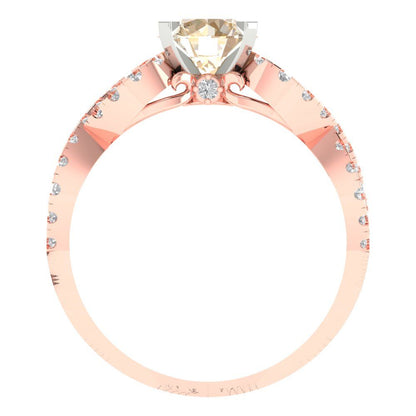 1.42 cttw Natural Morganite Solitaire with Zirconia Simulated Diamond Accents Engagement Ring - Solid Gold (Round Cut,6.5mm)