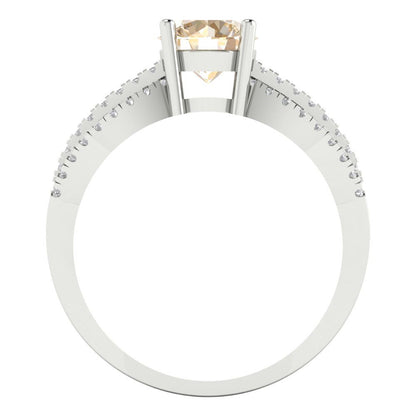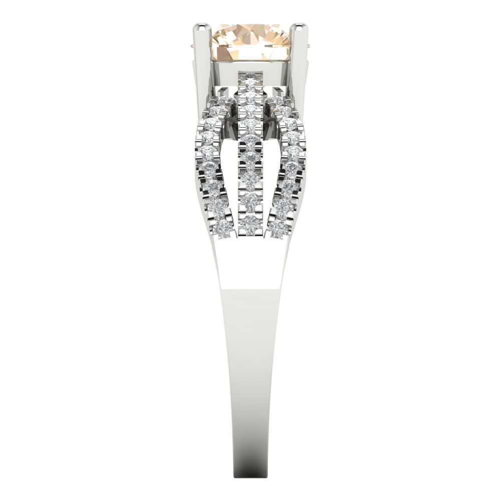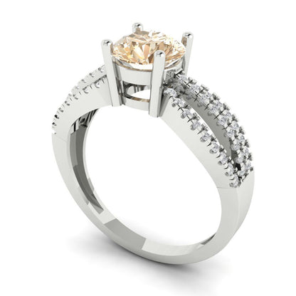 1.27 cttw Natural Morganite Solitaire with Zirconia Simulated Diamond Accents Engagement Ring - Solid Gold (Round Cut,6.5mm)