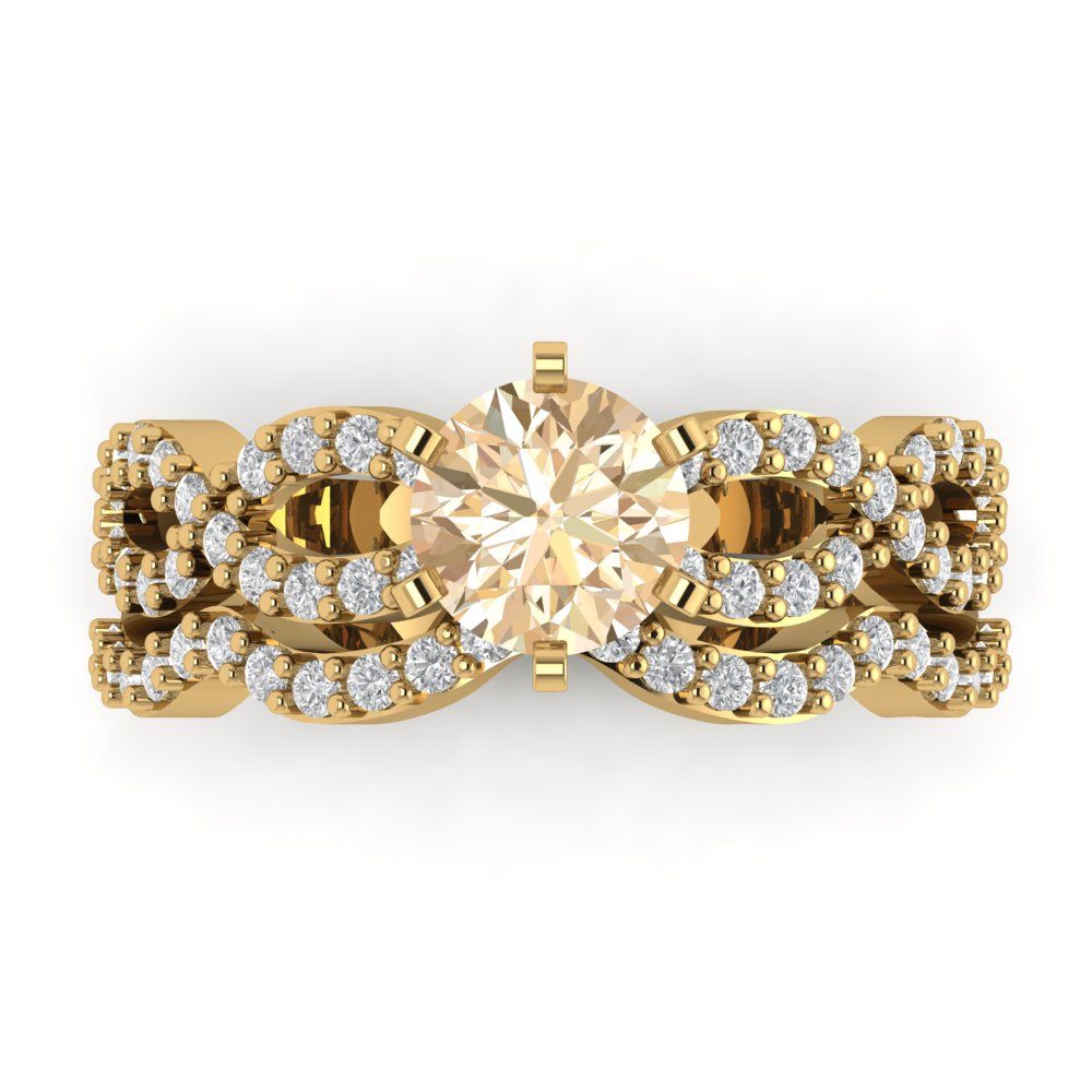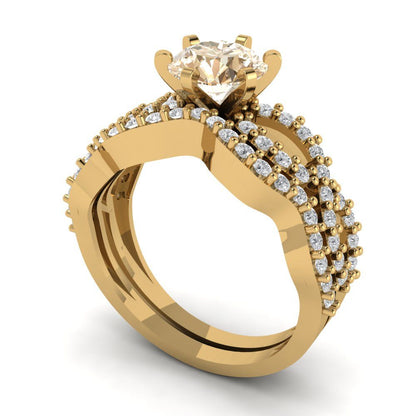 1.57 cttw Round Cut Natural Morganite Bridal Set - Solid Yellow Gold Engagement Ring & Wedding Band