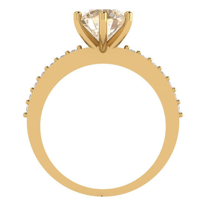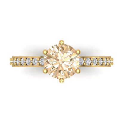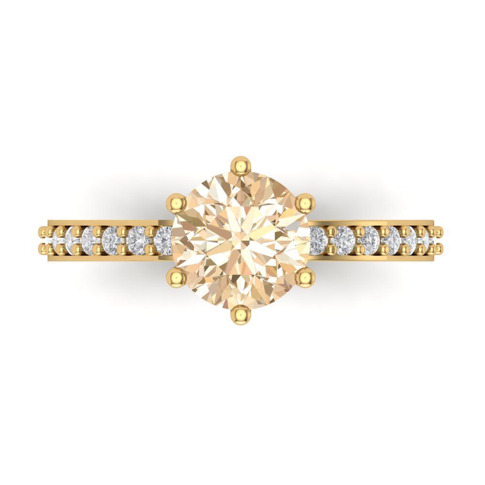 1.71 cttw Natural Morganite Solitaire with Zirconia Simulated Diamond Accents Engagement Ring - Solid Gold (Round Cut,7.5mm)