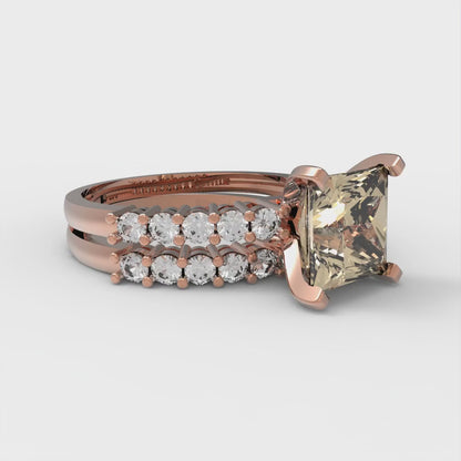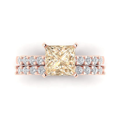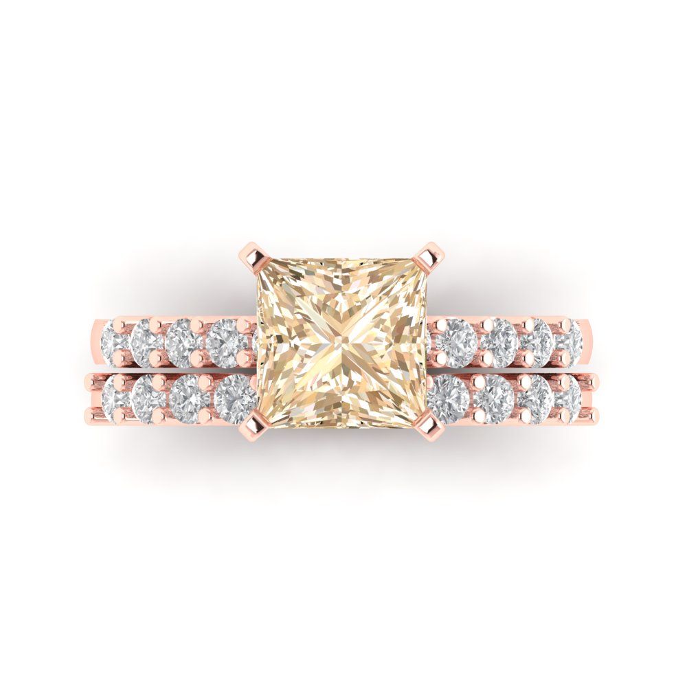 2.63 cttw Princess Cut Natural Morganite Bridal Set - Solid Rose Gold Engagement Ring & Wedding Band