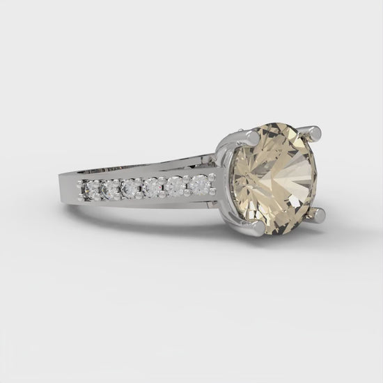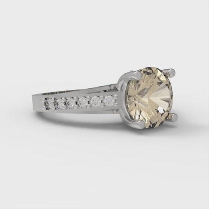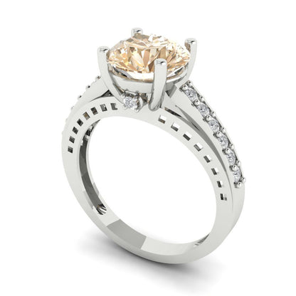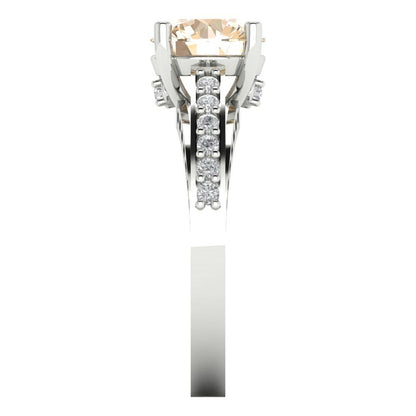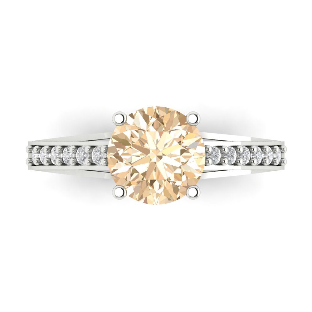 2.21 cttw Natural Morganite Solitaire with Zirconia Simulated Diamond Accents Engagement Ring - Solid Gold (Round Cut,8.0mm)
