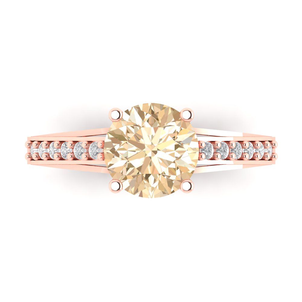2.21 cttw Natural Morganite Solitaire with Zirconia Simulated Diamond Accents Engagement Ring - Solid Gold (Round Cut,8.0mm)