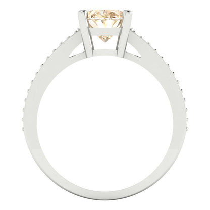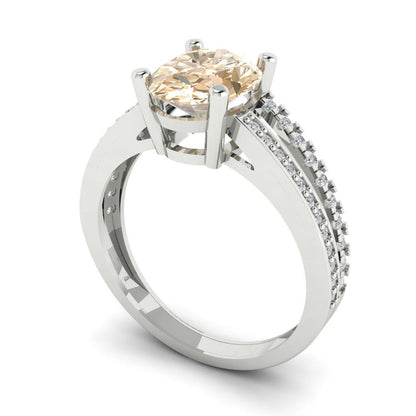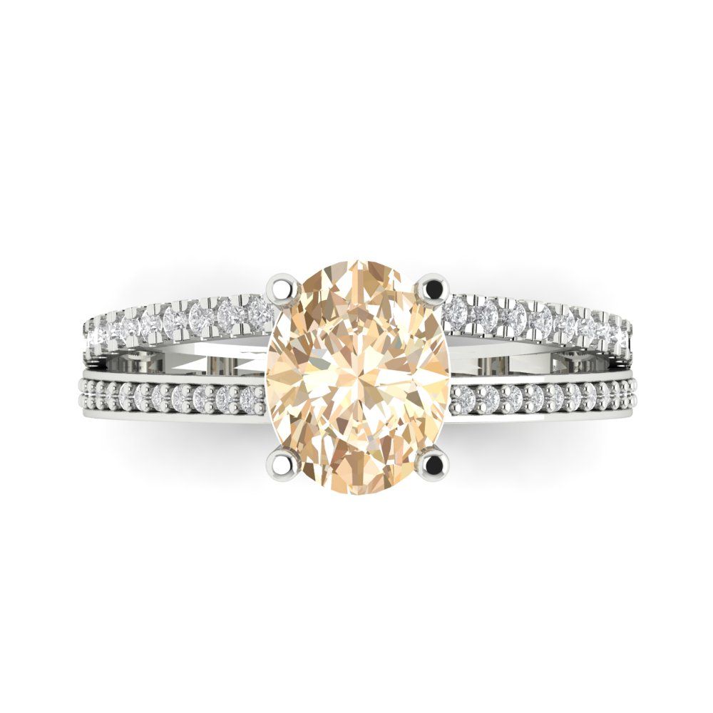 2.32 cttw Natural Morganite Solitaire with Zirconia Simulated Diamond Accents Engagement Ring - Solid Gold (Oval Cut,9X7mm)