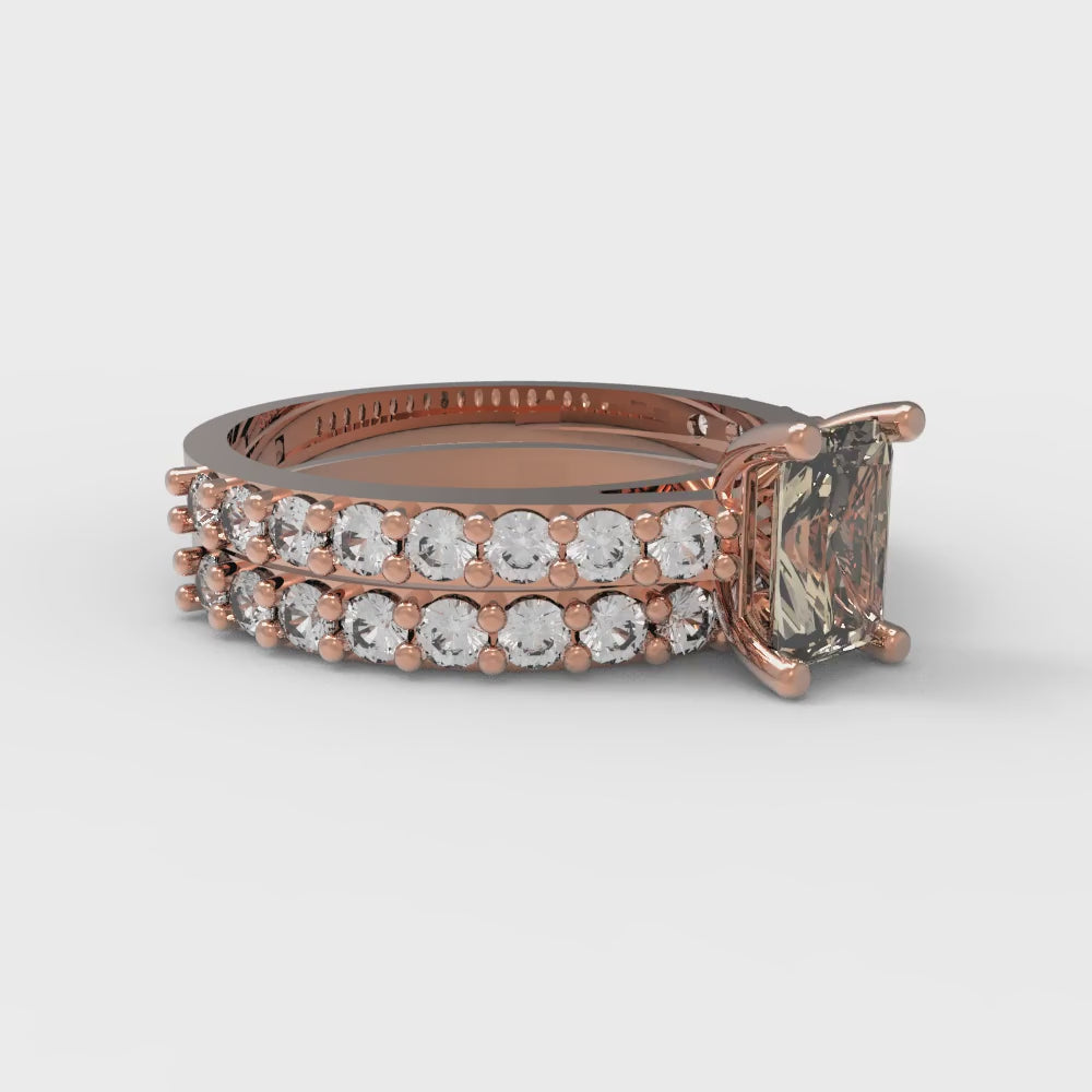 1.325 cttw Emerald Cut Natural Morganite Bridal Set - Solid Rose Gold Engagement Ring & Wedding Band