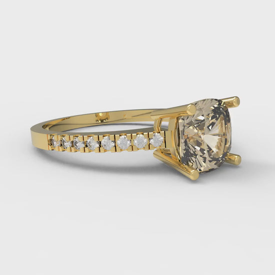 2.7 cttw Natural Morganite Solitaire with Zirconia Simulated Diamond Accents Engagement Ring - Solid Gold (Cushion Cut,6.5mm)