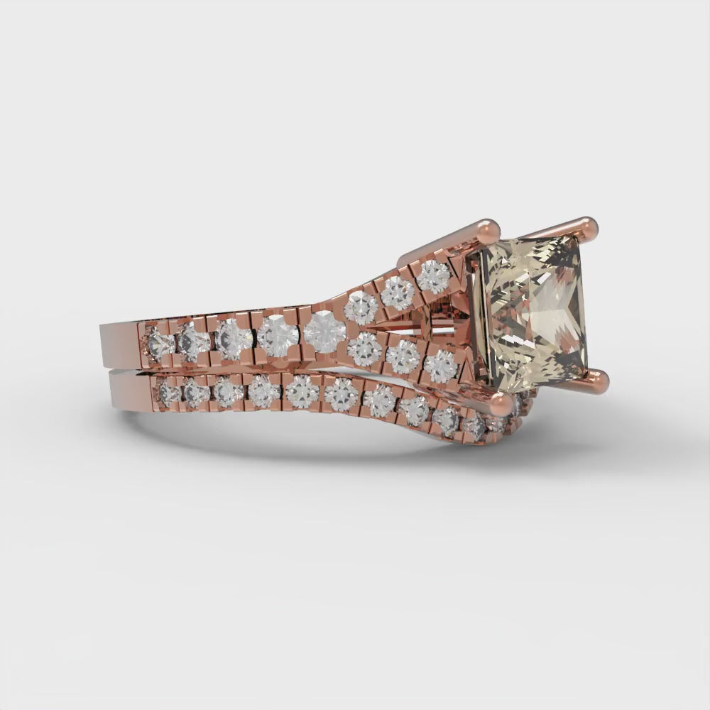 3.4 cttw Princess Cut Natural Morganite Bridal Set - Solid Rose Gold Engagement Ring & Wedding Band
