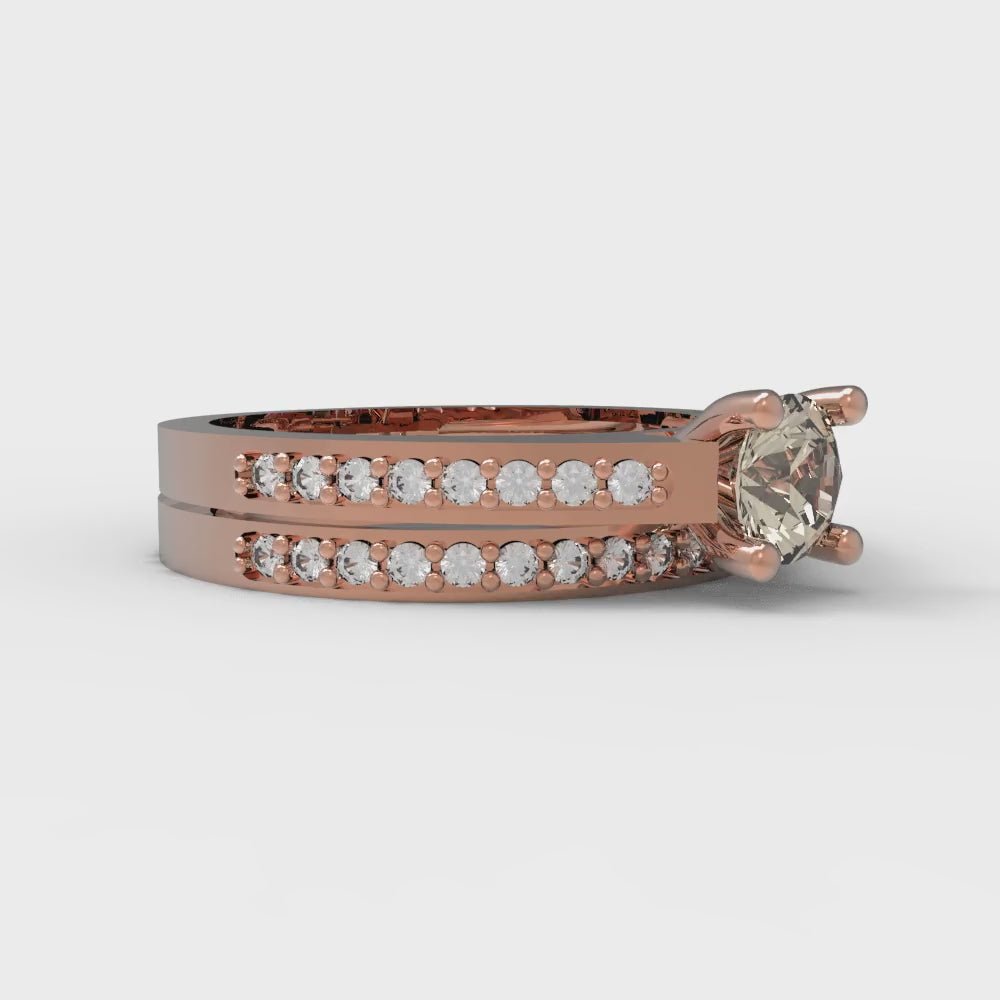 0.86 cttw Round Cut Natural Morganite Bridal Set - Solid Rose Gold Engagement Ring & Wedding Band