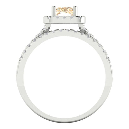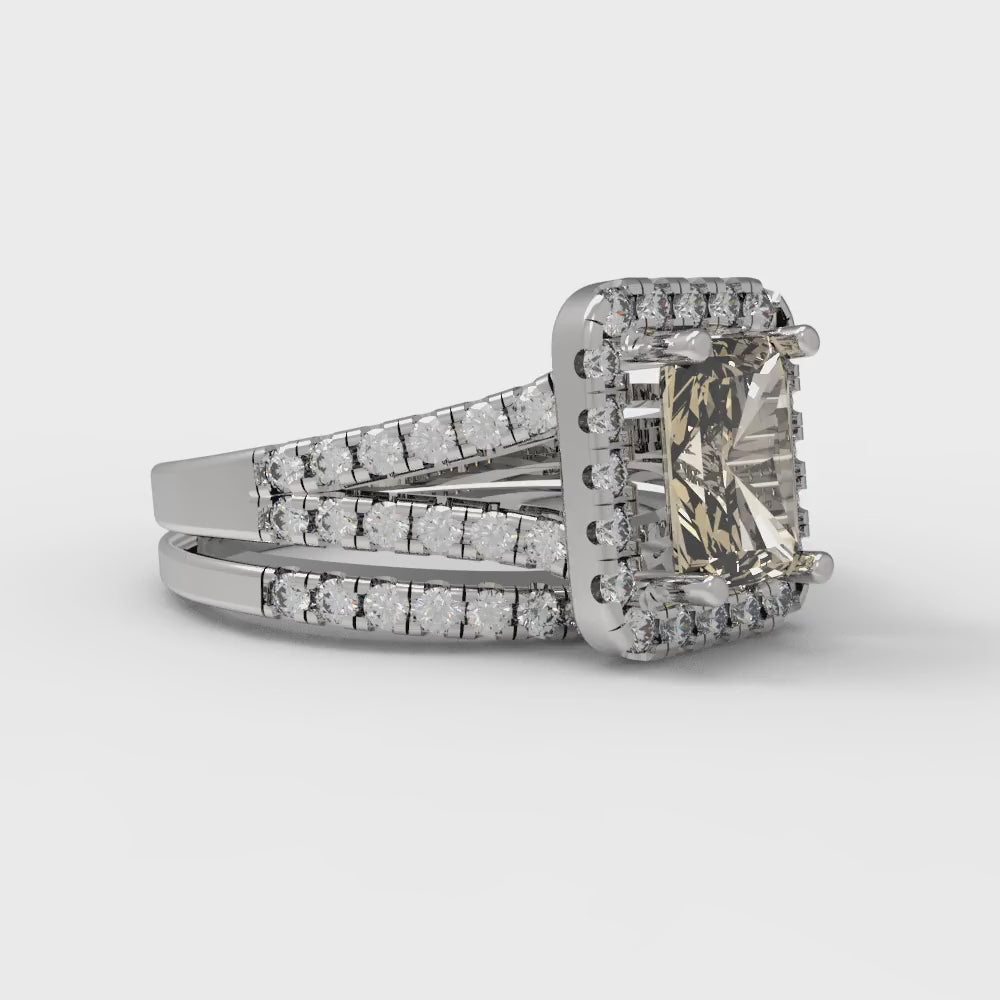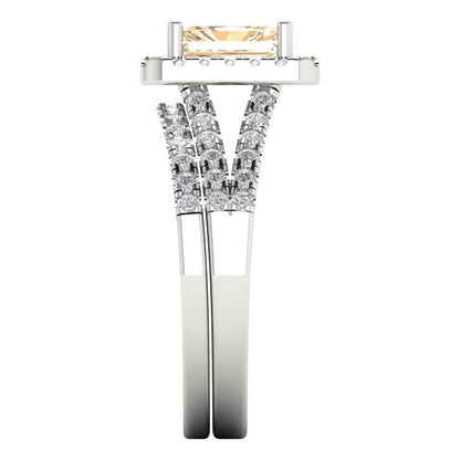 1.72 cttw Emerald Cut Natural Morganite Bridal Set - Solid White Gold Engagement Ring & Wedding Band