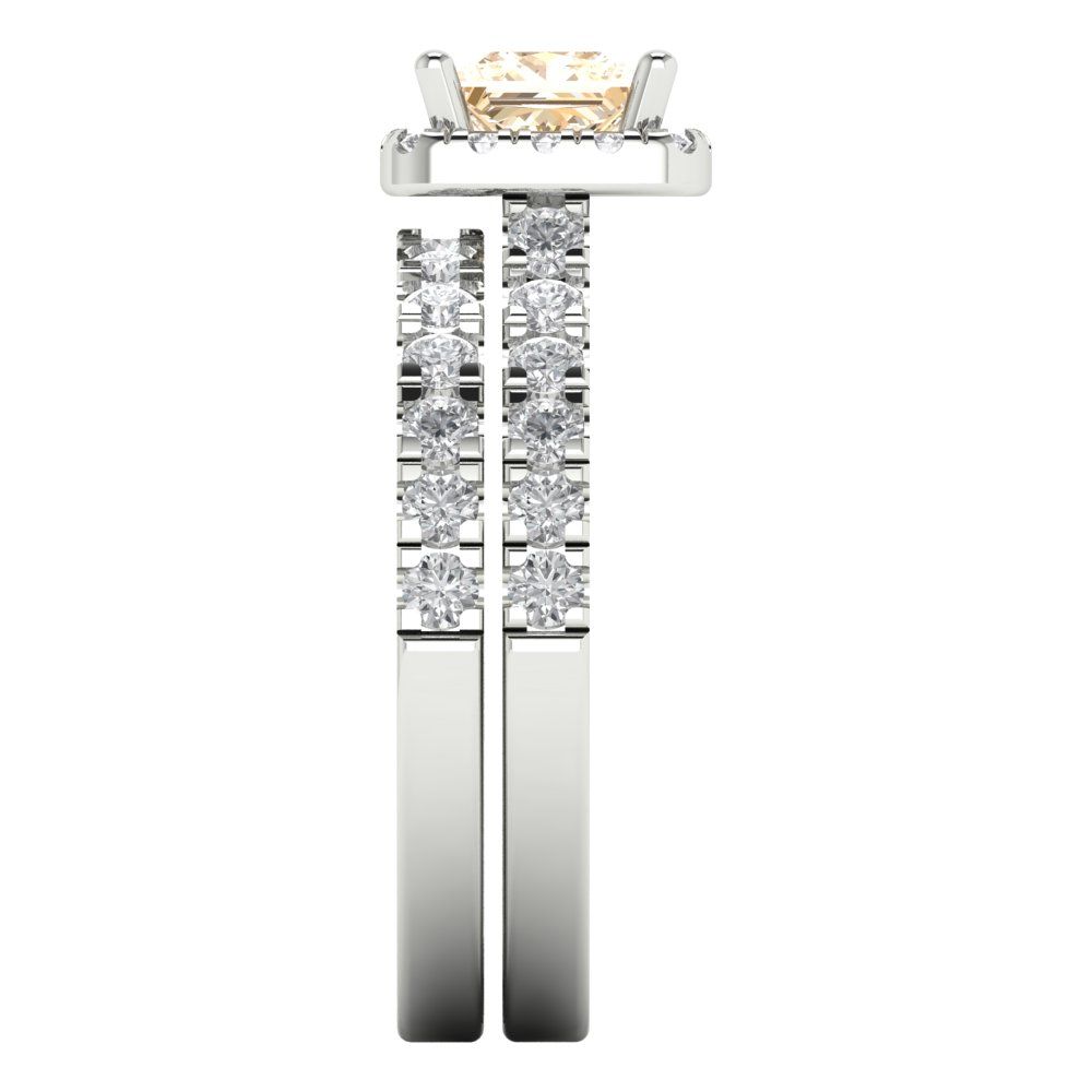 1.56 cttw Princess Cut Natural Morganite Bridal Set - Solid White Gold Engagement Ring & Wedding Band
