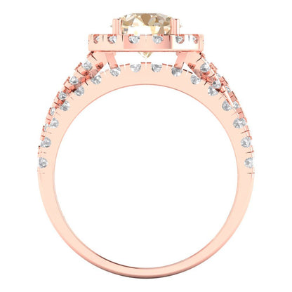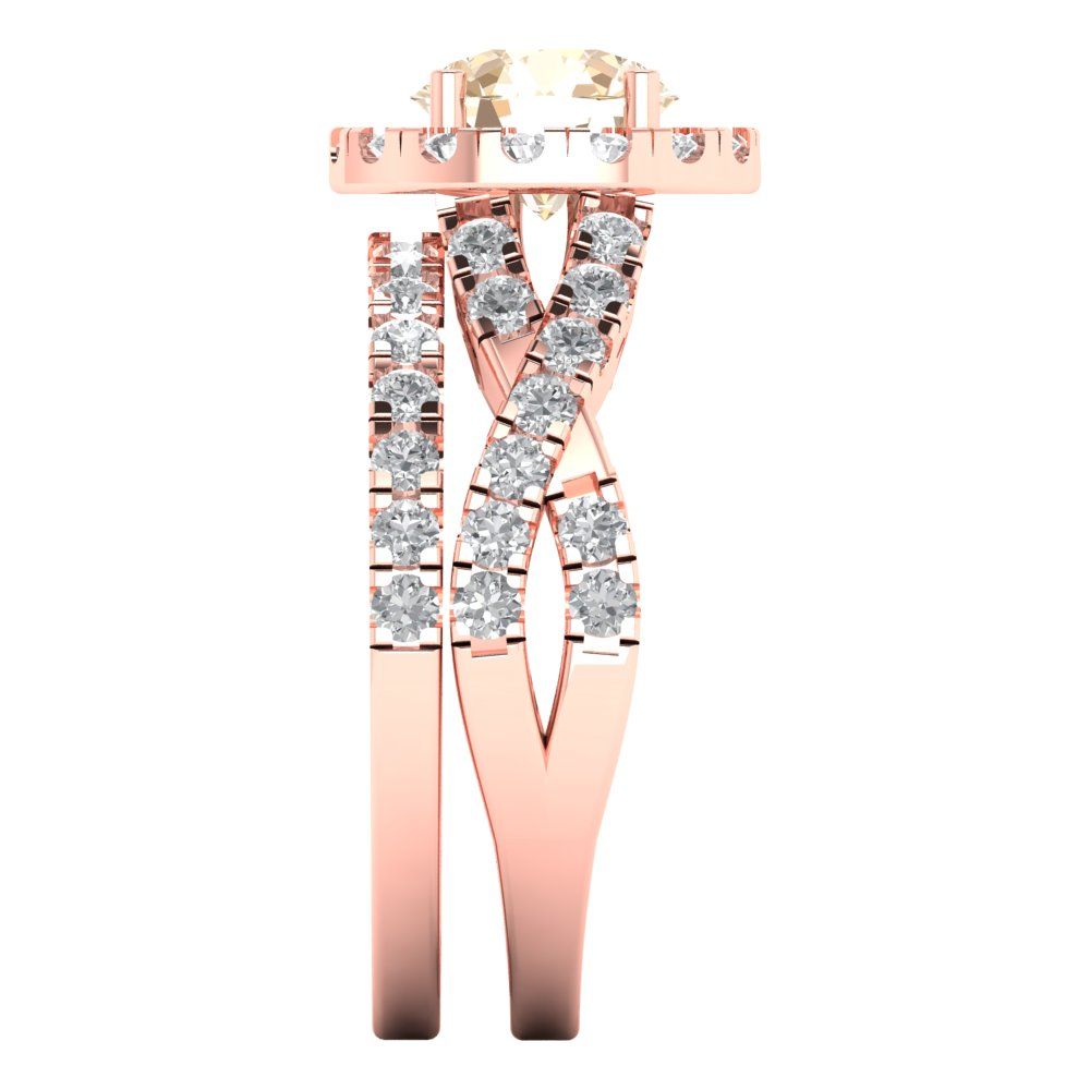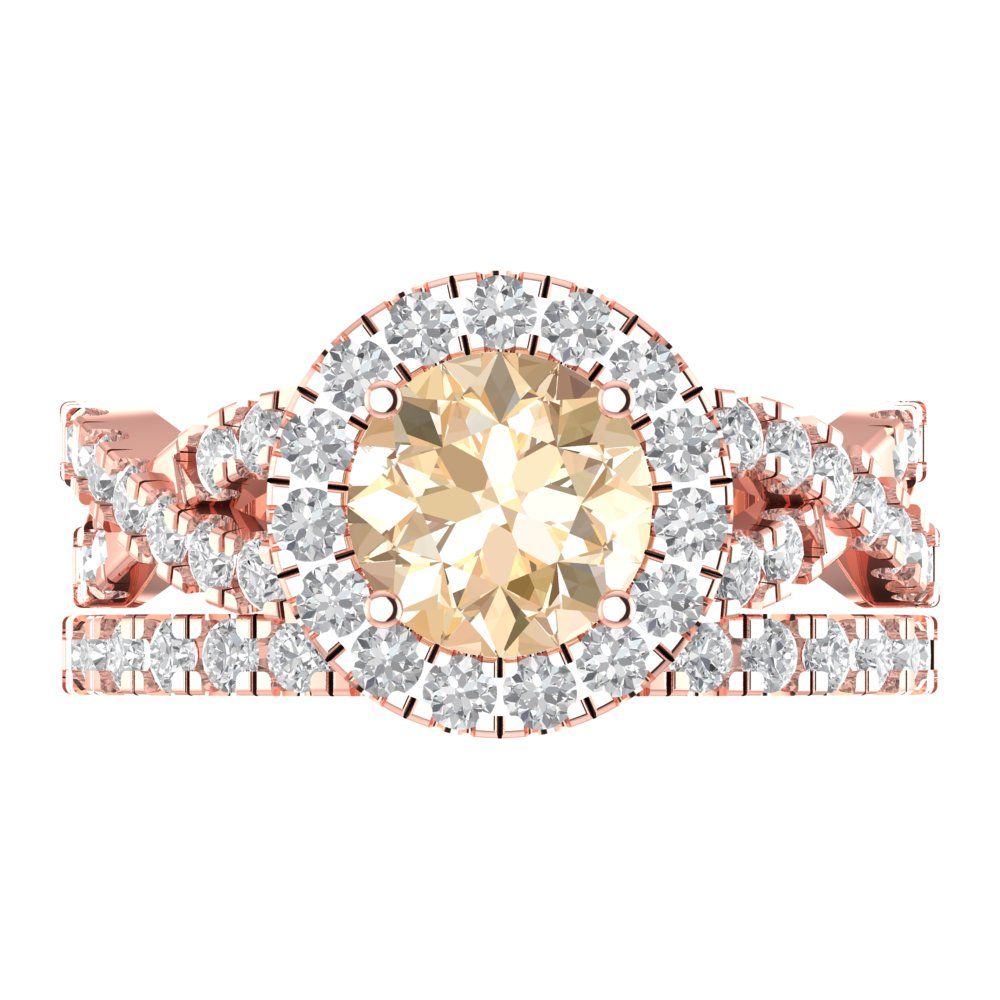 1.795 cttw Round Cut Natural Morganite Bridal Set - Solid Rose Gold Engagement Ring & Wedding Band