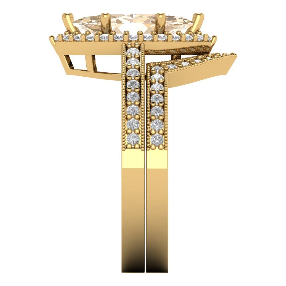 2.4875 cttw Marquise Cut Natural Morganite Bridal Set - Solid Yellow Gold Engagement Ring & Wedding Band