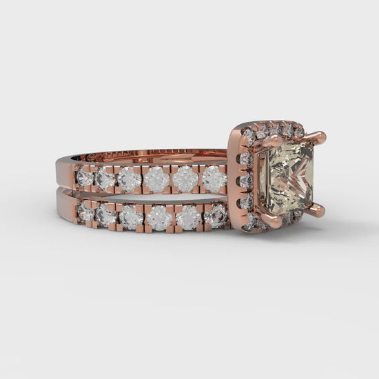 1.56 cttw Princess Cut Natural Morganite Bridal Set - Solid Rose Gold Engagement Ring & Wedding Band