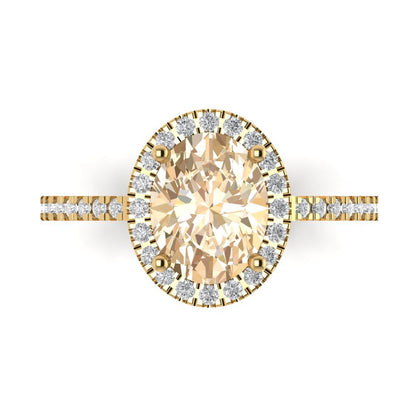 2.27 cttw Natural Morganite Solitaire with Zirconia Simulated Diamond Accents Engagement Ring - Solid Gold (Oval Cut,9X7mm)