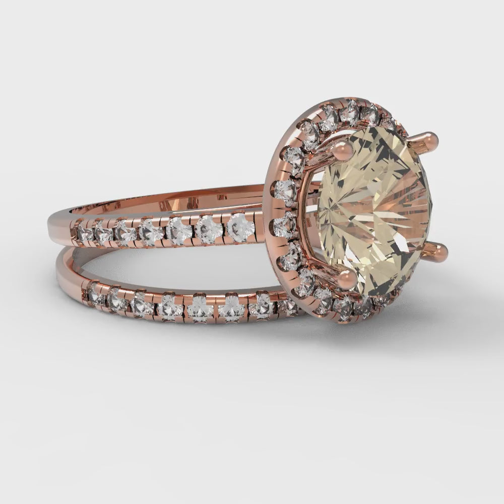 2.52 cttw Round Cut Natural Morganite Bridal Set - Solid Rose Gold Engagement Ring & Wedding Band