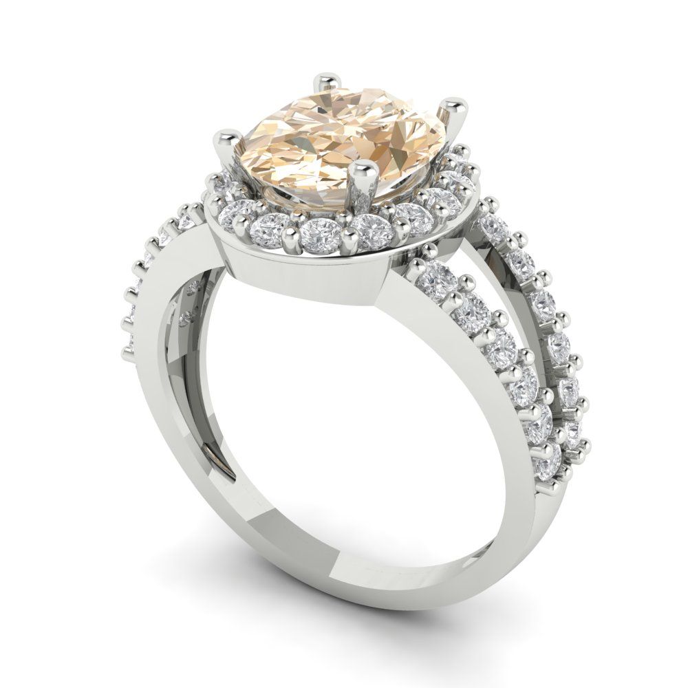 2.6 cttw Natural Morganite Solitaire with Zirconia Simulated Diamond Accents Engagement Ring - Solid Gold (Oval Cut,9x7mm)
