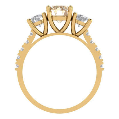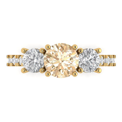 1.97 cttw Natural Morganite Three-Stone Engagement Ring - Solid Gold (Round Cut,6.5mm)